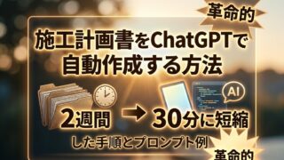 しごと 施工計画書をChatGPTで自動作成する方法|2週間→30分に短縮した手順とプロンプト例 筆者プロフィール 施工管理歴: 18年の現場監督 資格: 1級・2級施工管理技士 経験: 鉄筋コンクリート造・木造・鉄骨造すべての現場経験あり その他: 施工管理のきつさも楽しさも知っている。転職も一度経験。AIツールも実際に業務で活用中。... 2026.04.03 しごと