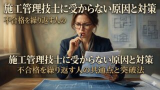 しごと 施工管理技士に受からない原因と対策|不合格を繰り返す人の共通点と突破法 施工管理技士に何度も受からない人の共通点と突破法を解説。合格できない理由を分析して次回こそ受かる対策を紹介。 2026.04.07 しごと